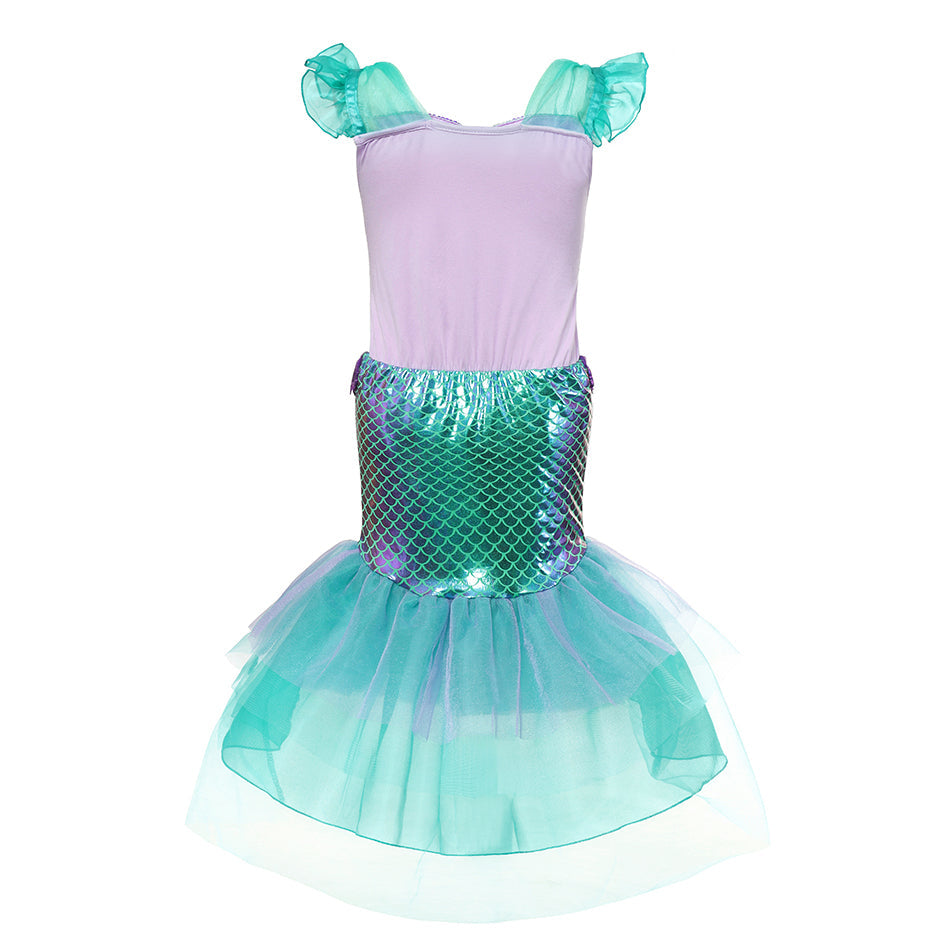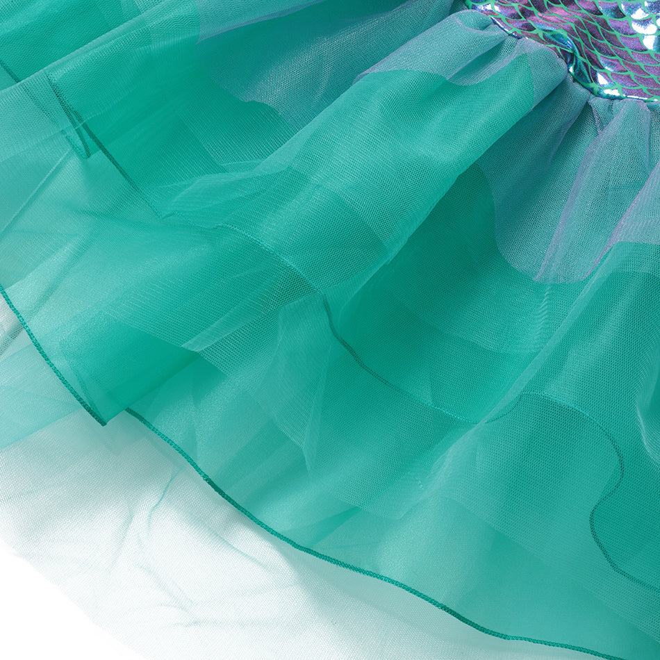 Twoja mała córeczka będzie najpiękniejszą syreną w tym czarującym kostiumie syreny z Atlantiki. Ma marszczone wykończenia, cekiny i błyszczącą spódnicę.