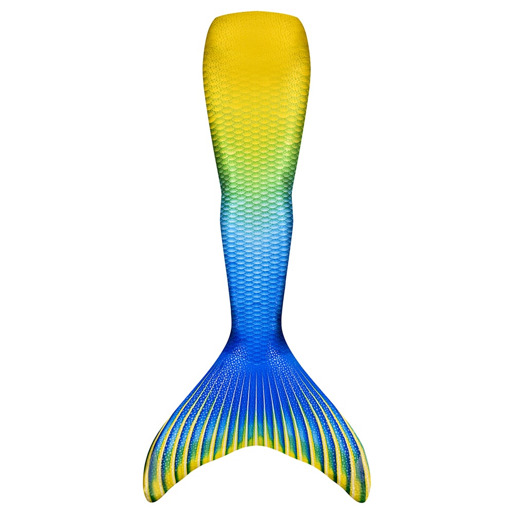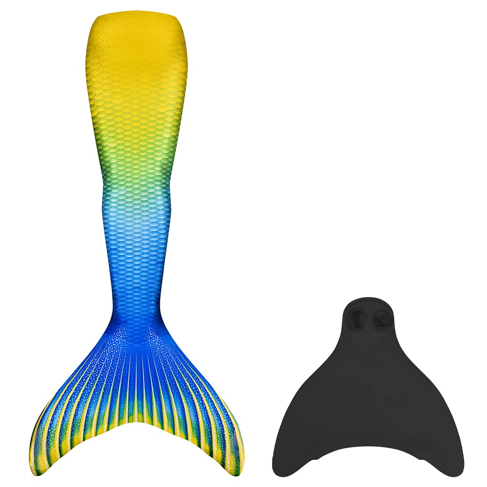 Ten model wyróżnia się pięknym niebiesko-żółtym nadrukiem oraz efektownym motywem łusek, który nadaje mu wyjątkowy wygląd. Ogon syreny jest dostępny w dwóch wersjach kolorystycznych, dzięki czemu łatwo wybrać wariant dopasowany do gustu dziecka. Prezentuje się świetnie zarówno w wodzie, jak i poza nią — idealnie podkreśla syreni styl podczas zabawy i pływania.