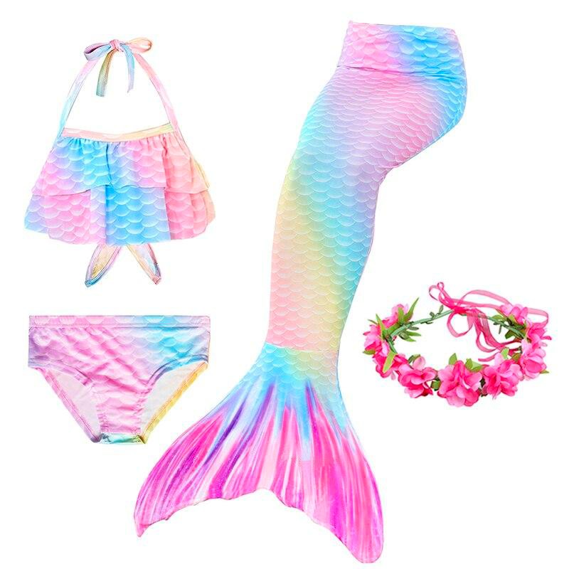 Zestaw wielokolorowego ogona syreny dla dziecka z akcesoriami