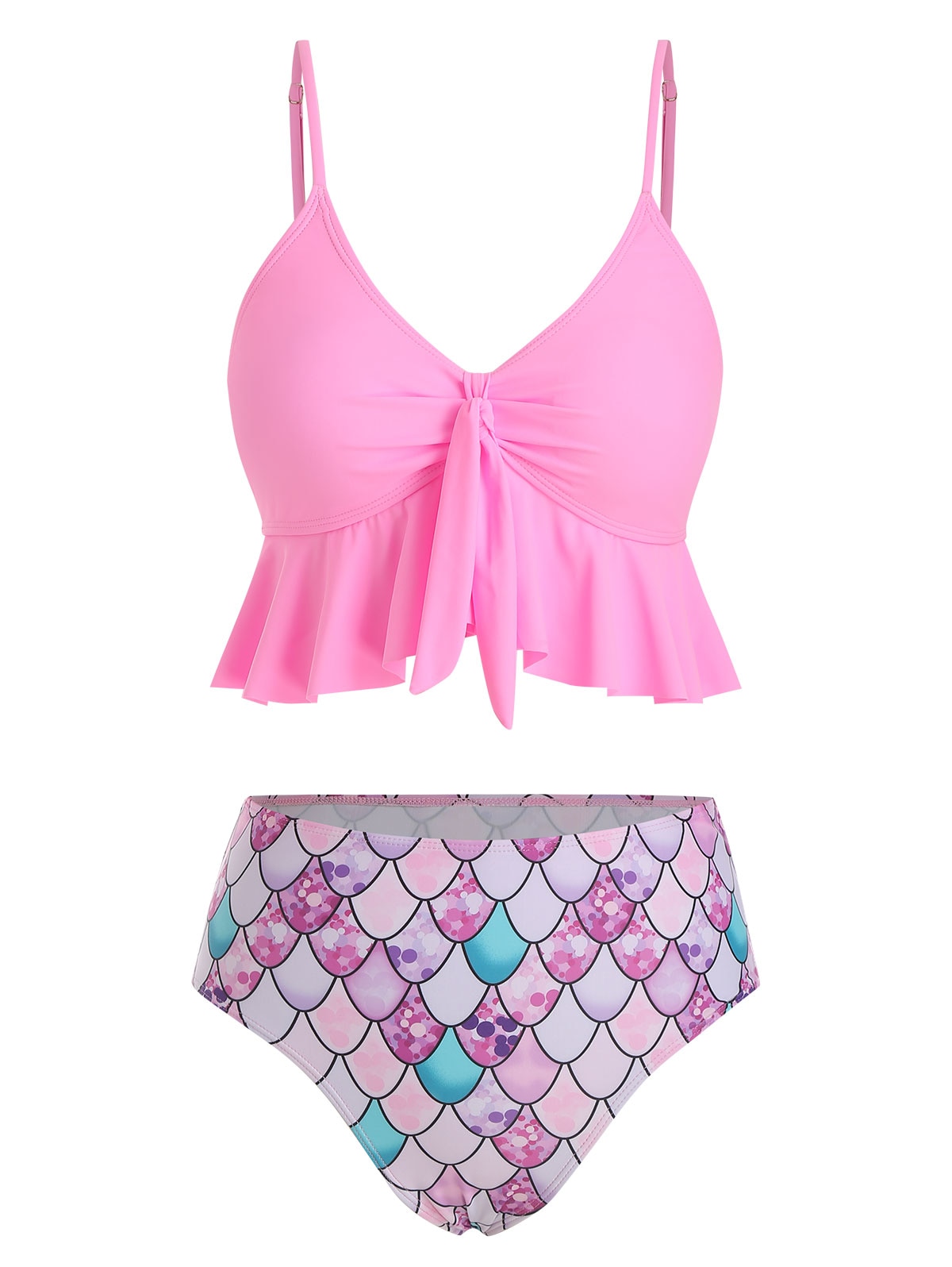 Załóż ten piękny strój kąpielowy z różowymi łuskami i topem inspirowanym sylwetką syreny.